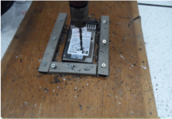 用打孔机对硬盘进行打孔,物理上损坏硬盘,做完后将硬盘带回工厂做环保销毁。