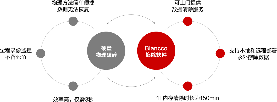 用消磁机进行磁暴,破坏硬盘的磁道,从而达到物理上损坏,做完后将硬盘带回工厂做环保销毁。