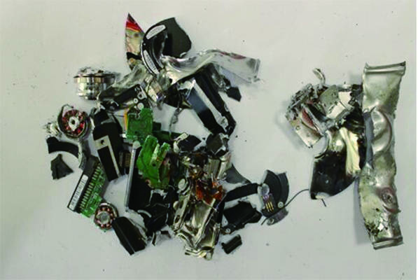 用粉碎机对硬盘进行切割,并且碎片必须低于22mm*22mm才可以从粉碎机中落下,最后将碎片做环保处置。